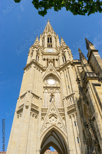 © Outsiderzone, Fototapeta premium main tower with neo-gothic pinnacles. Buen Pastor Cathedral in the city of San Sebastian, Basque Country, Spain.