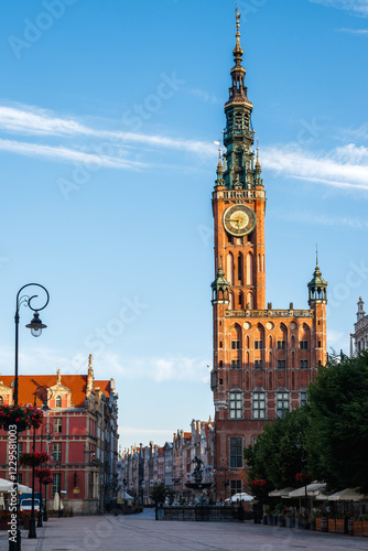 Naklejka premium Main Town Hall and Long market street known as Dlugi Targ square in Gdansk,...