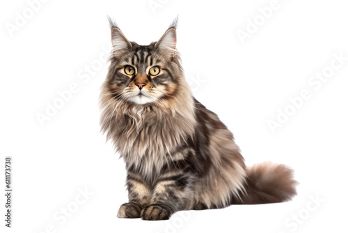 Fototapeta premium Maine Coon cat isolated on transparent background. Generative AI