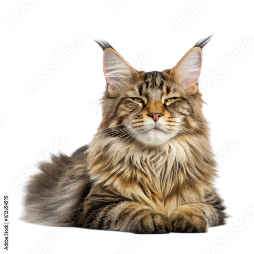 © kashem, Obraz premium Maine coon cat relaxing with eyes closed isolated on transparent background
