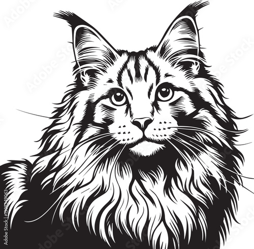 © Sarmad, Fototapeta premium Maine coon cat vector in black and white