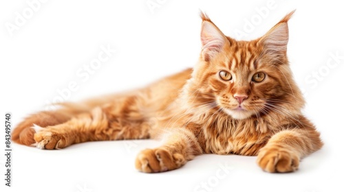 Obraz premium Maine Coon Cat with Ginger Red Fur on a White Background