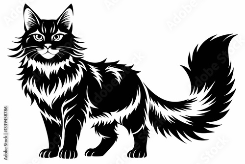 © Pinak, Obraz premium maine coon line art silhouette vector illustration