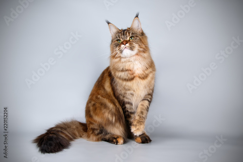 © Aleksand Volchanskiy, Obraz premium Maine Coon red cat on colored backgrounds