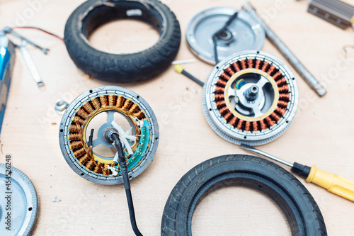 Fototapeta premium maintenance of electric vehicles, electric scooter repair.