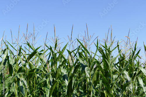 © Maren Winter, Fototapeta premium Maisfeld unter blauem Himmel