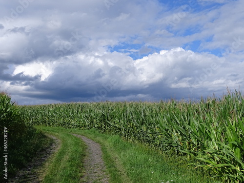 Obraz premium Maisfeld vor weiß--blauem Himmel