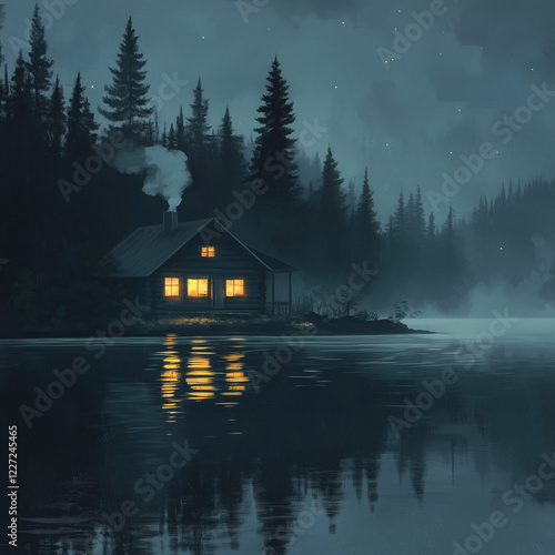 © marie, Fototapeta premium maison chaleureuse a cote du lac