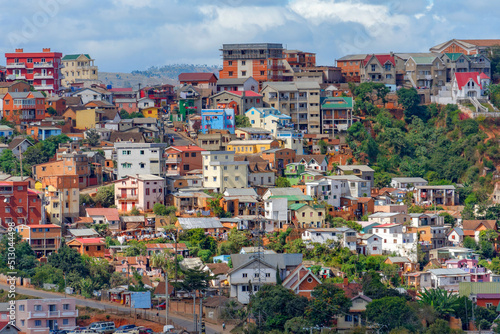 © PPJ, Naklejka premium Maisons colorés dans la ville d'Antananarivo à Madagascar