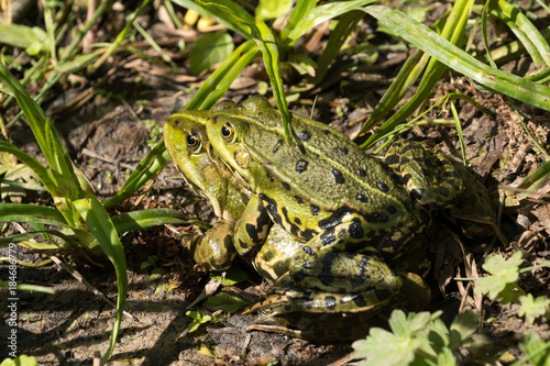 © Lux, Fototapeta premium Maiting water frogs on the shore