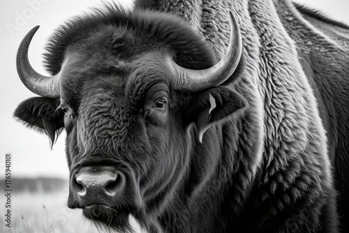 © Michael, Naklejka premium Majestätischer Bison in der Wildnis – Nahaufnahme eines kräftigen Tieres auf einer weiten Ebene