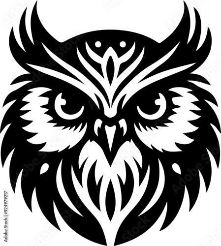 © Arfin, Fototapeta premium Majestatyczne głowy sów, czarno-biała ilustracja wektorowa, sylwetka 20