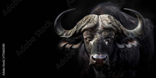 Naklejka premium Majestic African buffalo on black background