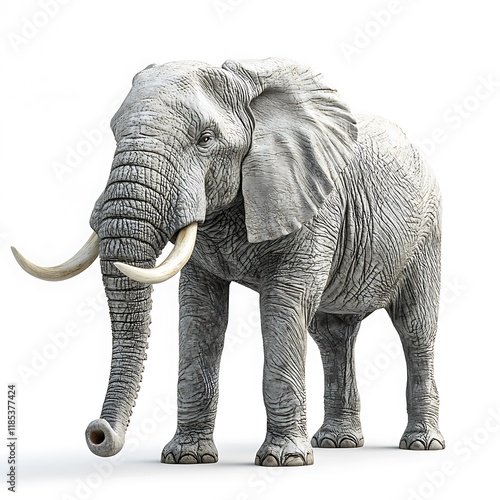 © Woranuch, Obraz premium Majestic African Elephant with Large Tusks Isolated on White Background.