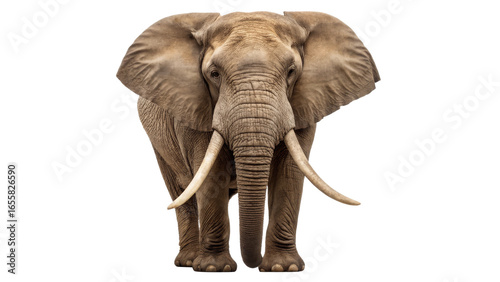 Obraz premium Majestic African Elephant with Large Tusks Isolated on white background