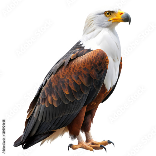 © Eshana, Fototapeta premium Majestic African Fish Eagle: Isolated on Pure White Background, Perfect for Wildlife Designs and
