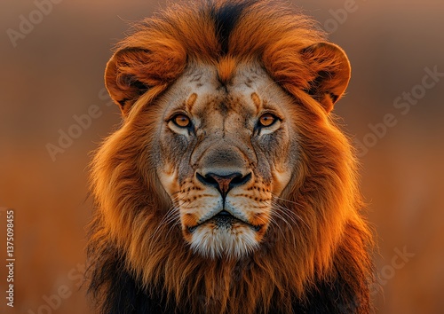© cinta, Fototapeta premium Majestic African Lion at Sunset.