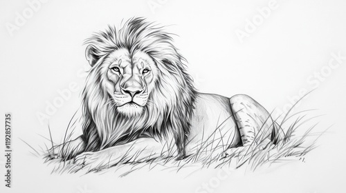 Obraz premium Majestic African Lion in the Savanna: A Graphite Masterpiece