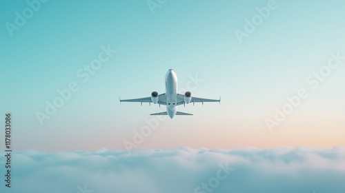 Fototapeta premium Majestic Airplane Flying Above Soft Clouds at Sunset
