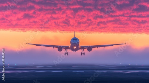 © 2247, Fototapeta premium Majestic Airplane Landing at Dawn