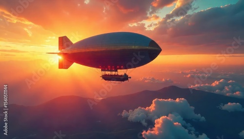 Fototapeta premium Majestic Airship at Sunset A Breathtaking View of Airship Ballooning,...