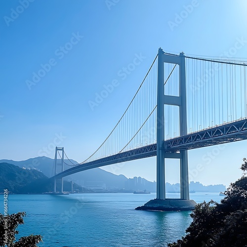 Fototapeta premium Majestic Akashi Kaikyo Bridge structure reflecting architectural brilliance image