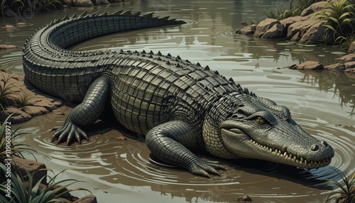 © ArtStock, Naklejka premium Majestic Alligator in a Tranquil Swamp