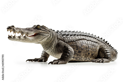 Obraz premium Majestic alligator roaming, crocodile on white background, portrait of crocodile