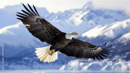 © Omias, Obraz premium Majestic American Bald Eagle Soaring Gracefully in the Sky