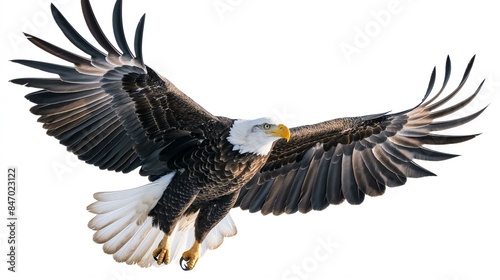 Obraz premium Majestic American Bald Eagle Soaring with Wings Fully Outstretched Against a...