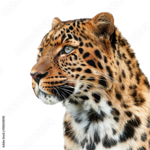 © Suchart, Fototapeta premium Majestic Amur Leopard Portrait on Isolated Clean transparent background