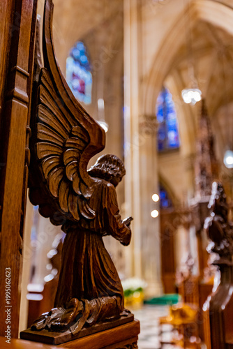 © BGStock72, Fototapeta premium Majestic angel sculpture in St. Patrick Cathedral capturing divine tranquility