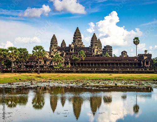 Obraz premium Majestic Angkor Wat temple reflected in a serene pond (1)
