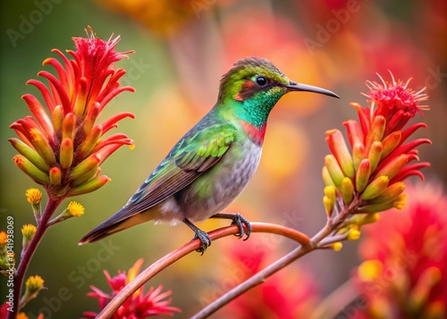 © Arnada, Fototapeta premium Majestic Annas Hummingbird on Flowering Kangaroo Paw Branch in Nature's Splendor