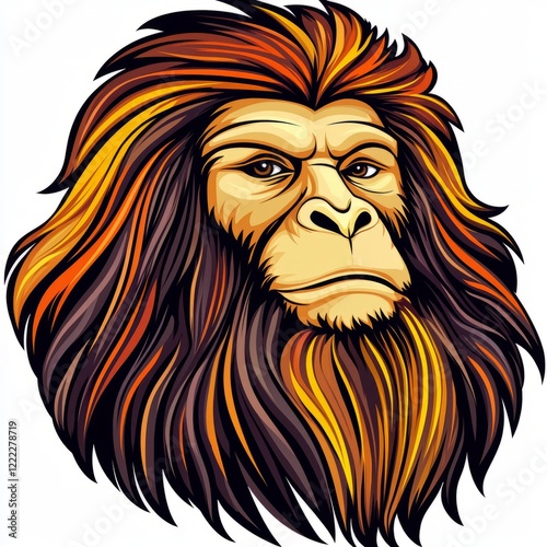 © fadillah, Fototapeta premium Majestic Ape Head with Fiery Orange Hair