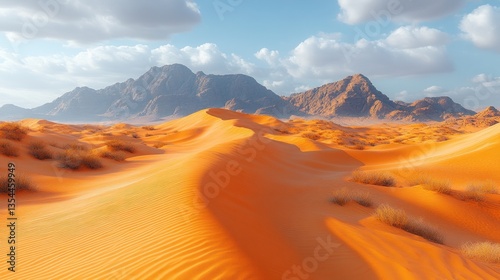 Naklejka premium Majestic Arabian Desert Landscape: Golden Sands and Rugged Mountains