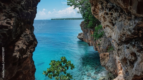 Fototapeta premium Majestic Arch Rock Facing the Crystal Clear Sea, Embracing the Serenity and...