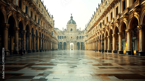 Fototapeta premium Majestic Architecture: A Picturesque Italian Piazza bathed in Golden Sunlight