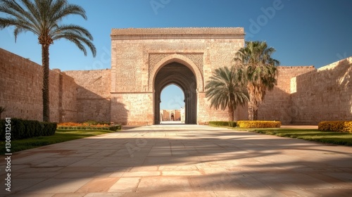 © BOJOShop, Fototapeta premium Majestic Archway Entrance to Ancient Arab Building Sunny Day