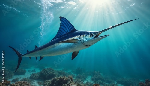 © Argan, Naklejka premium Majestic Atlantic Blue Marlin Underwater Photography