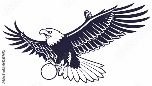 Obraz premium Majestic bald eagle flying with ball vector illustration for logo design and...