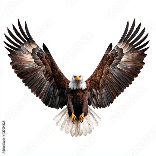© Sukkamon, Fototapeta premium Majestic Bald Eagle Glaring with Outstretched Wings in a Dramatic Pose on White Background