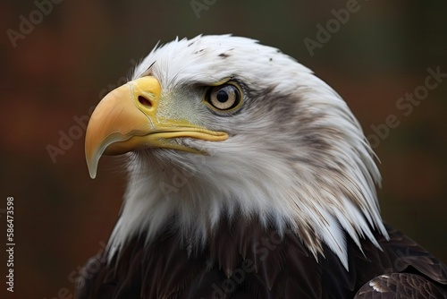 Obraz premium majestic bald eagle in a portrait style with a warm brown background....