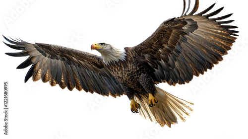 Fototapeta premium Majestic Bald Eagle in Flight: A powerful bald eagle with striking white head...