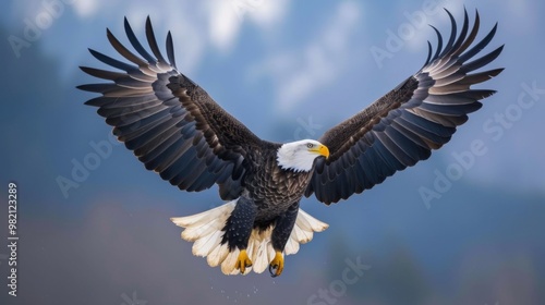 Fototapeta premium Majestic Bald Eagle in Flight: A Symbol of Freedom