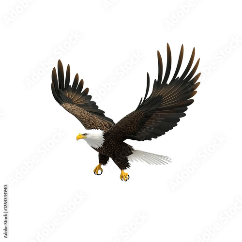 Naklejka premium Majestic Bald Eagle in Flight Against on white background