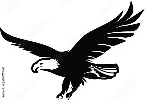 Obraz premium Majestic bald eagle in flight black silhouette graphic design element