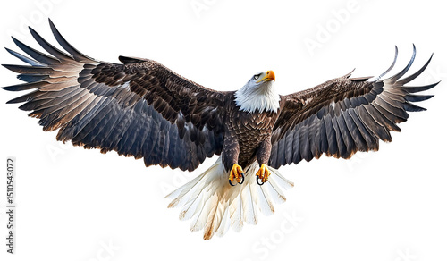 Fototapeta premium Majestic bald eagle in flight isolated on transparent background