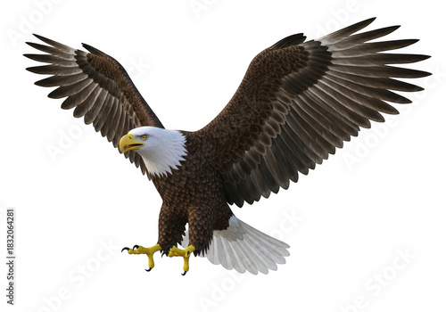 © Tuba, Naklejka premium Majestic bald eagle in flight isolated on transparent background for wildlife, freedom and national symbols