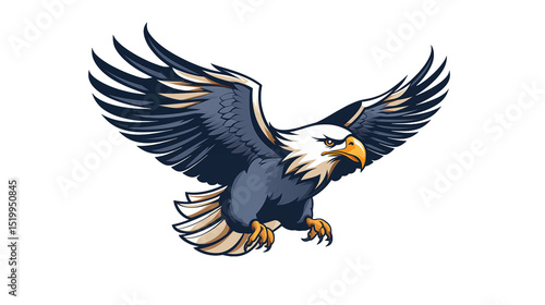 Obraz premium Majestic Bald Eagle in Flight Powerful Wings Soaring Bird Artwork on white...